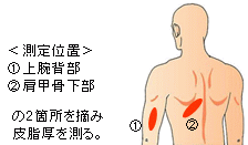 キャリパー法で体脂肪率を計算します。