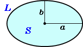 \(\normalsize Ellipse\\ (1)\ area:\hspace{85px} S=ab\pi,\hspace{20px} b\le a\\ (2)\ circumference:\\ \hspace{20px} L=4aE(k),\hspace{20px} k=\sqrt{1-({\large\frac{b}{a}})^2}\\ \hspace{20px} E(k):\ 2nd\ complete\ elliptic\ integral\\(3)\ ellipticity:\hspace{40px} c={\large\frac{b}{a}}\\ (4)\ linear\ eccentricity :\ f=\sqrt{a^2-b^2}\\\)