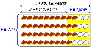 (2) 分配人数=(足らない個数+余った個数)÷分配数の差