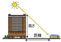 建物までの距離は自宅から真南方向、建物は入力された値と同じ高さで、東西方向に無限遠まで伸びていると仮定します。