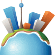 2都市間の最短距離とその方位角計算し、都市AからBの方角を表します。