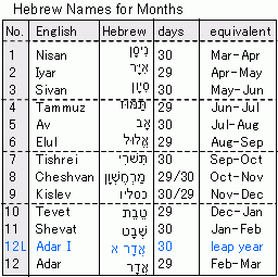 ユダヤ暦は紀元前3761年10月7日を紀元(創世紀元)とする太陰太陽暦で、閏月の挿入は19年に7回の頻度(メトン周期)で行われている。