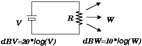 指定インピーダンス系での電圧、電力、デシベル電圧、デシベル電力を相互に変換した表を作成します。