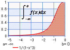半無限領域 (-∞,b)の数値積分の積分を二重指数関数型(DE)数値積分で計算します。無限遠点で関数が代数的に減衰する場合に適します。